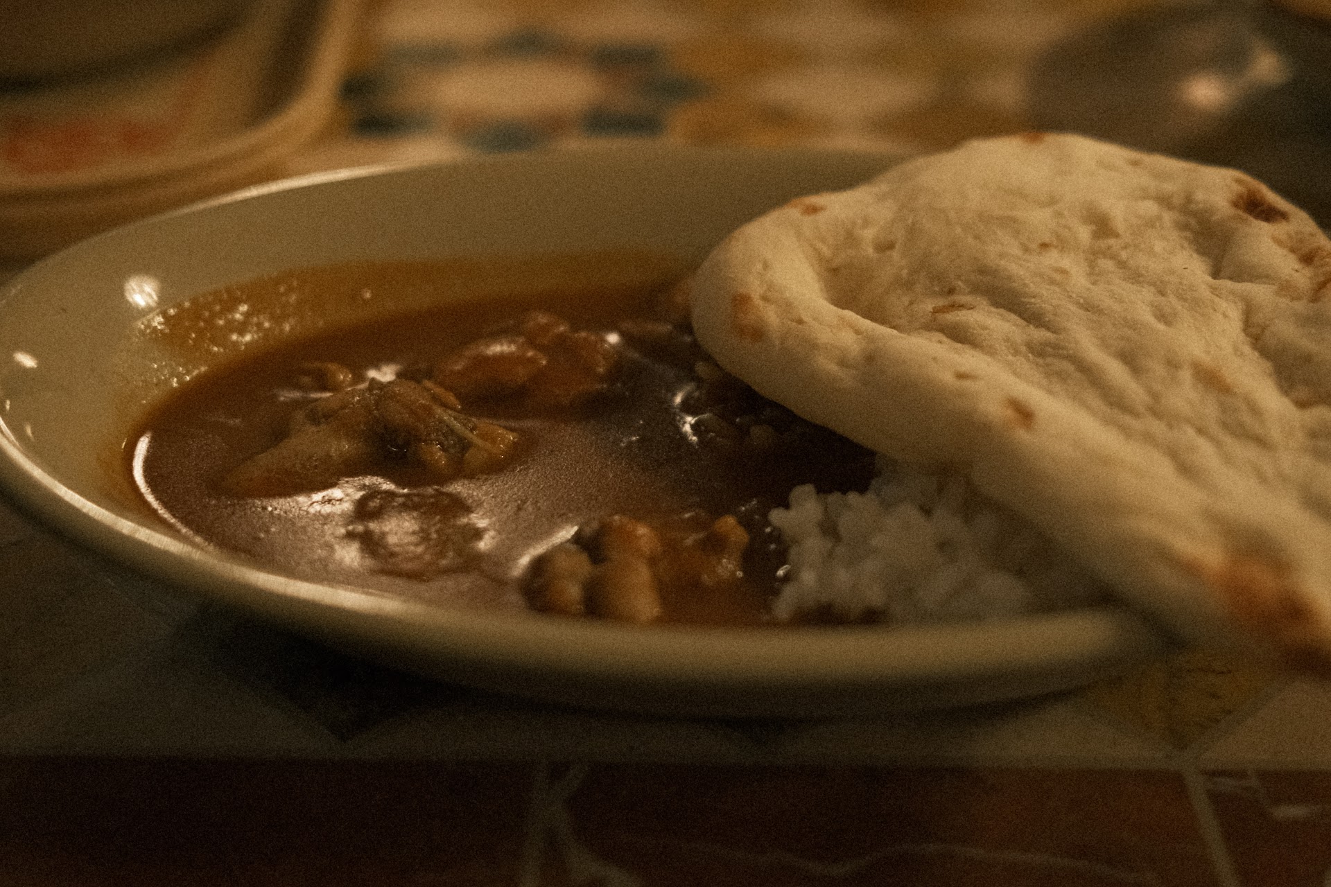 • Food/Beverage • We all ordered the curry rice with naan. While the naan bread was disappointingly hard, the curry and rice were delicious. The curry had a sweet flavor and was served warm, making it a comforting meal.