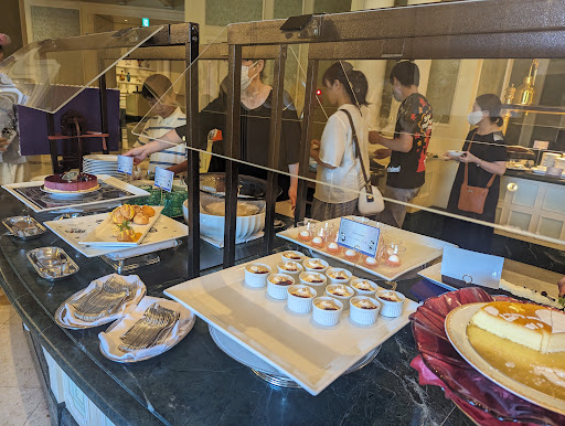 結局、この日は、2時間近い滞在時間となりましたが、ビュッフェコーナーの混雑を見ると、皆、私達と同じ動きで、この時間帯には、空き始め、デザートを召し上がりながら、テーブルでくつろいでいる人達が多く見られ、逆にホールスタッフの方が、ドリンク等の注文に大忙しという状況でした。