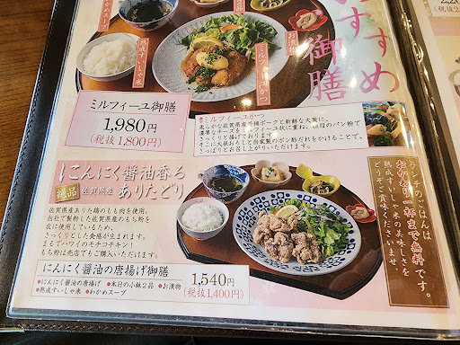 Read moreCame for lunch on a normal Wednesday weekday at 1130 and the place was starting to fill up. We opted to sit on the terrace watching the river - was a beautiful autumn day so was perfect. Had the Mille fille gozen which was 1350 yen - volume wise it was enough, you can also refill on the rice. Awesome place,...