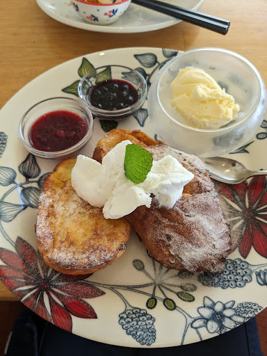 The dumpling set with chimaki is superb, the stewed hamburg with omelet is amazing, and the coconut curry with chicken is sublime. The French toast is offered in full and half sizes if you want the whole snack or a small dessert to end your meal. It's absolutely wonderful.