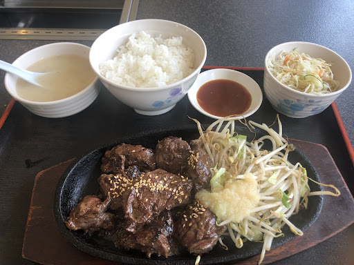Read moreA good steak lunch for ¥1000. Seven ounces of Saikoro steak with bean sprouts, rice, salad with citrus soy dressing, creamy soup, and sweet tea. The flavor of the steak is delicious and the steak had no excessively fatty or sinewy pieces. Some pieces were soft and some had some chew to them, but all of the pieces were easily consumed. It is a spacious place with large tables and parking on both sides of the building. Get here early as it can get busy. If seven ounce is enough, they serve a larger steak...