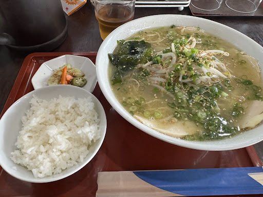 火曜日の午後0時ころ入店。店の前に5台分くらいの駐車場があります。カウンターとテーブル席があり、カウンターに座りました。塩ラーメン(税込550円)、水餃子(税込300円)を注文。注文後にメニューをよく見ると、麺を食べたあとにスープにライスを入れることを勧めていたので、ライス(税込100円)を追加。年配の夫婦でしているようでした。5分くらいで全て提供されました。ラーメンは、旨味があり美味しかったです。塩ラーメンと聞いて想像する味とは異なり、独特な味だと思いました。少し塩分が高いように感じましたが、塩ラーメンなんだから当然かもしれません。水餃子はもちもちしていて美味しかったです。スープにライスを入れてみて、これも美味しかったです。水餃子を注文しなくても、ラーメンとライスで満足できます。宇佐市には有名なラーメン店がありますが、私はどんの...