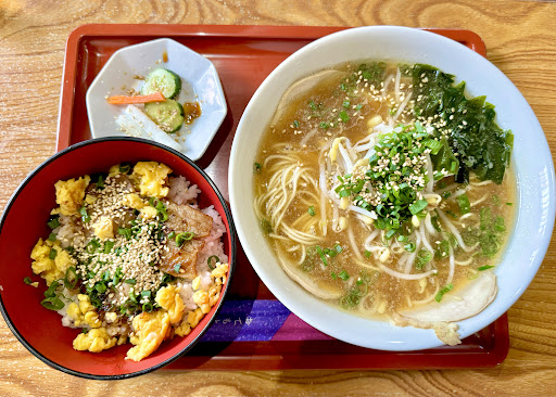 私は醤油ラーメンとミニ豚丼のセットを頂きました。 関西や関東で食べるガッツリ醤油ラーメンと異なり、和風でほんのり醤油感の楽しめるラーメンです。 ちゃんこスープ使ってるのか? ワカメスープの様な優しさに醤油を感じる。 飲み干しても罪悪感のないラーメンです。 麺は細ストレート麺を使用。トッピングはチャーシューとモヤシ、ネギ、ワカメ、ゴマ。 かなりち...