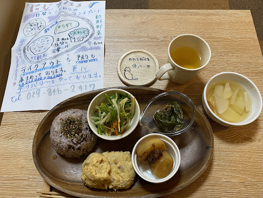 Read moreにじカフェさん ランチ税込600円 安い。メニューは毎回変わるそうです。🍱 テイクアウトも可能。野菜、🍊柿、アクセサリー等も販売されてました。 身体に良い素材を使用。 雰囲...