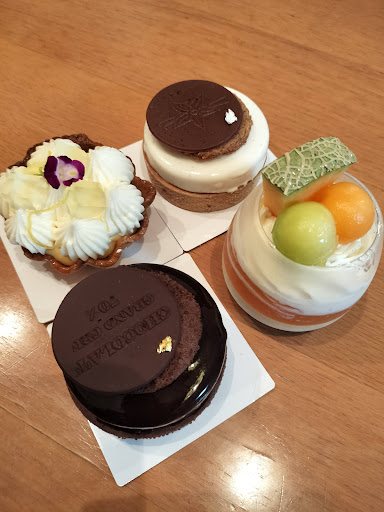 Read moreR6.10 牛久に来て パティスリー開拓中 ここは 地元の人気店だとか ケーキは ドイツ銘菓とかある チョコ系のケーキ ボンボンショコラも ショコラティエとしても 凄そう マカロンとか 焼菓子も たくさん それに パータ·ドゥ·フリュイ に サブレナント これ パティスリーでは見かけない菓子 と思うのだが 先日 つくばのパティスリーにもあった こちらではポピュラーなの ショートケーキと 目を惹く赤い薔薇 モンテクリスト 好きなシュークリーム2種 なぜここになラムボール 買う ショートケーキは ジェノワーズ ふわふわ 甘さ香りも よい シャンティイ コクと軽さを両立し 甘さ控え目 いちご熟して おいしい もっと挟んでほしいな モンテクリストは チョコのコク 苦みが効く 強い甘さは フランボワーズ·コンフィの甘酸っぱさが 引き締めてる 紅茶クリームは直接感じず しつこさを和らげてる ムース·オ·ショコラとしての完成度 高い ただ モザールだろか 酒 強い 酔ってしまう カリカリシュークリーム 時間経って カリカリじゃなくなった もったいない 1時間以内に 食べないと… たっぷりシュークリーム パータ·シューはフワッとしっかり たっぷりのクリームは 好きなパティシエール どこもディプロマットの御時世 パティシエールは嬉しい バターのコクも程好い カリカリのクリームも同じかな ラムボール 横浜 思い出す 元町の喜久屋で買ってた やっぱラム強 更に酔う 喜久屋に比べ レーズン控え目 チョコ度高い...