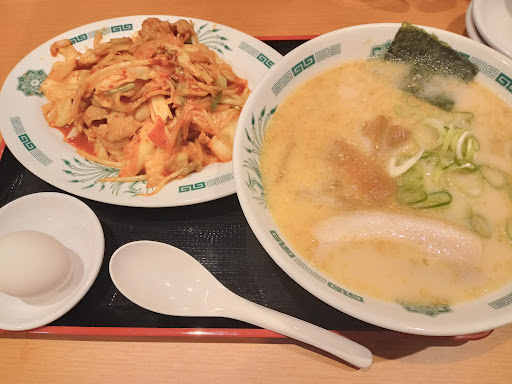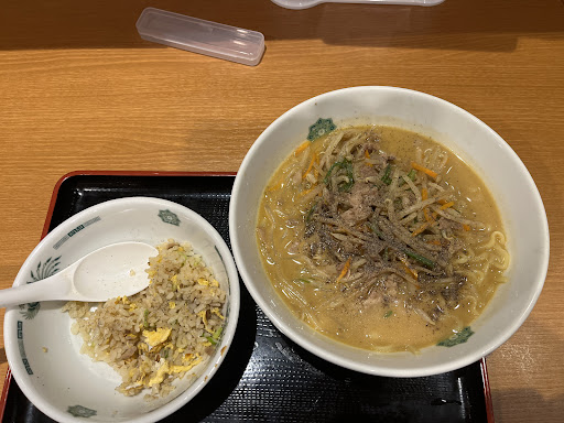 今日は牛久駅から歩いて0分の場所にある日高屋にお邪魔している。時間は既に22:20分を指している。 ここは駅前に食べるところが少ないことから土曜日の夜だというのに大盛況だ🤣 駅前ということもあり専用の駐車場はないがタイムズなどのコインパーキングはある。 入店すると人数を伝え空いているカウンター席へどうぞと案内された。各席目の前にテーブルがありタブレットでの注文となる。もちろん普通のメニュー表も準備されている。 席はカウンター・テーブル席と広々としている。今日はおほんの始まり・週末ということで老若男女で繁盛している。 メニューはラーメン中心にチャーハン・餃子・ニラレバ炒めなど定番の定食が並んでいる。 数多いいメニューの中から今日は味噌ラーメン➕半チャーハンをオーダー! と言っている間に着丼。いただきます。 まずは味噌ラーメンのスープからいただく。コクがあり美味しい😋次はチャーハンをいただくがまー普通かな🤔日高屋さんはチェーン店で大衆に受けるが企業コンセプトだと思うのでこのくらいでちょうど良い🙆 例の如くチャーハンは胡椒をたっぷりかけ一気にいただく。しまった‼️写真を撮り忘れている💦いつもの感じで食べ途中の写真をアップすることとなった💦 半チャーハンをペロリといただき味噌ラーメンへと突入。幸楽苑の野菜の量には負けるが野菜が入っている🥦欲を言えばもう少し入れて欲しい。麺は中太麺を使用。若干もちもち感もありそこそこ美味しい😋 しかし15時から飲み歩いてこの時間に締めのラーメンだから少し多過ぎたかも💦。残して帰るかもしれませんがごめんなさい🙇...