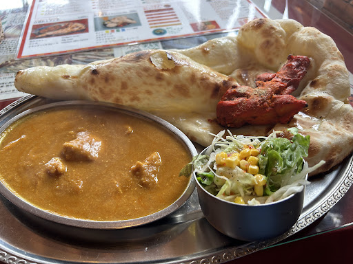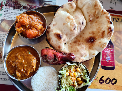 Read more夕食時に寄らせていただきました!まず、店内で空いている席は何処でもどうぞと私は1人でしたが6人掛けのテーブルに座り店員の方が丁寧に料理の説明をしていただき辛さも6段階程有り市販のカレーの辛口が辛3にあたりますと説明があり私は辛口が好きだから辛4で2種類のカレーとナン🫓が食べれるアーグラセットにして待つと直径30センチ程のナンとほうれん草のカレーとエビのカレーとサラダです!ナンの上に真っ赤なタンドリーチキンが乗っています!辛4にしましたが結構辛さがあり大変美味しくいただきました! ナンは外側はパリパリで中はモチモチでカレーに合っていました!カレーは2種類でほうれん草のカレーははほうれん草の野菜の旨味で甘く感じエビのカレーはしっかりと基本のカレーの旨味にエビのプリプリ感が合っていました!辛みが強いと困ると思いチャイを頼み飲むとミントのような感じがしたがカルダモンとシナモンを入れるとミントの様に感じました。 大変...