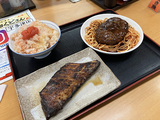The main dish is grilled fish, but fried fish and hamburger steak are also available.