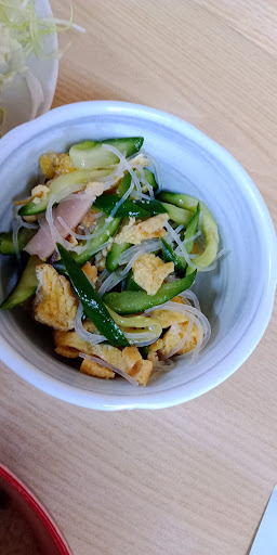 Read moreずっと気になっていたお店。 平日の11:40に入店。 先客2組9人ほど。 1人なのでカウンター席に案内。 「唐揚げ定食」発注 「お水はあちらにセルフです」と 指された方向には冷蔵庫、 麦茶のピッチャーと漬物が冷やされます。ガラスのコップは2種類冷蔵庫の上に乗っています。ピッチャーから麦茶をコップに入れピッチャーは冷蔵庫へ戻しました。そして漬物をひと皿取り席へ。 先客の料理を1人の調理人がさばいていく。 しばらくして到着。 ご飯茶碗と味噌汁茶碗(ワカメ入り)が 「ご飯と味噌汁はセルフです」と。 今回はご飯多かったかな? 味噌汁はお玉1杯でちょうどいいです。 唐揚げは、ひとつが大きい、味もちょうどいい、全部で5個、3個で白米1杯食べてしまった。オカワリは玄米ご飯で少なめに。独特の風味でいいですよ👍 キャベツのマヨネーズは追加するには20円かかります。足りないくらいがちょうどいい。小鉢は冷たい和え物で味変になります。 飲み物、ご飯、味噌汁、漬物は沢山食べて欲しいというお店の思いが伝わります。注意事で「残さないこと」が書かれている。残したものは持ち帰りできないので注意。 ご飯1杯でも多いくらいでした。 自己責任で楽しみましょう。
