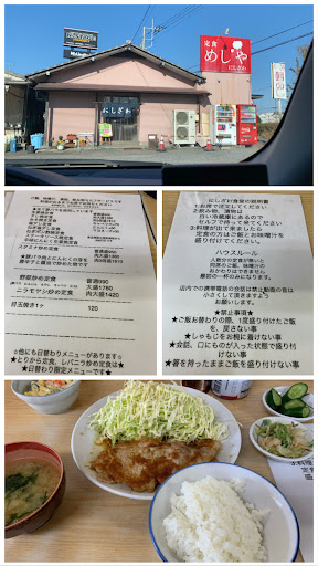 注文して10分も掛からず着丼、漬物白菜・きゅうり2皿・ごはん・みそ汁を取ってくる、キャベツたっぷりあり豚ロース3枚ボリュームあり、口コミ通りでショッパメですが美味い😋小鉢にマカロニサラダもイイ、米はちょっと硬めだけど美味しい😋、こんな食事が合ってる😅 テークアウトもできる様です。
