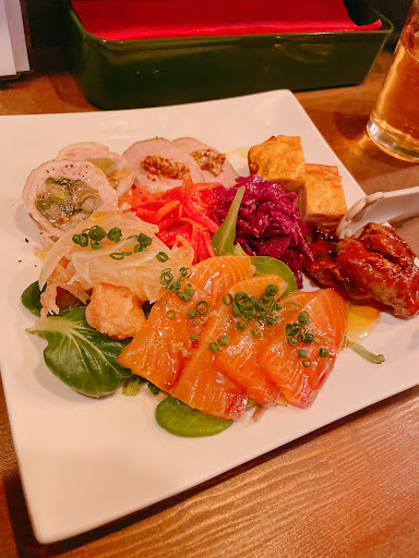 料理は一品料理がメイン。 お酒はワインがメイン。ソフトドリンクもあるので、飲めなない人でも大丈夫です。ちなみに、ワンドリンク制です。