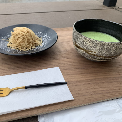 14時頃に散歩中にたまたま見つけて訪問させていただきました。 スタイリッシュな門構えと大谷石造りの蔵がカフェとなっており非常にオシャレな雰囲気です。 店頭のメニューを見てみると主食は全て完売、ラテ系の飲み物も既に完売との事でミニモンブランとお抹茶を注文。 夫は抹茶のアフォガートと煎茶を注文させていただきました。 ミニモンブランはそのサイズと比べて¥660と少々お高めの印象ですが、栗の風味を存分に感じられる上品なお味で中は生クリーム、底にはメレンゲクッキー?が敷いてありサクサクとしてて美味しかったです。(通常サイズだと¥1000。普段モンブランを注文しないのですが、これが平均価格なのでしょうか?た、高い……)