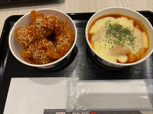 Read more韓国のジャンクフードであるヤンニョンチキン、トッポッキ、ホッドック等提供する韓国風軽食ファーストフード店。チキンはヤンニョンチキンの他にも種類が豊富のよう。今回は"ヤンニョンチキン5個"と"チーズトッポッキ"をイートインで、"キンパ海苔巻"をテイクアウトした。先ず、ヤンニョンチキンは水飴の甘さとコチュジャンのパンチ力ある辛さが見事に融合しとても美味しく食がめちゃススム!またチーズトッポッキはチーズと餅が絡みながら甘辛いコチュジャン味でこれまた美味しい!ほんのり滲み出る汗を拭き拭き完食した。一方、テイクアウトしたキンパも胡麻油の風味漂いこれまた美味しかった。韓国料理というと量が多く多人数で食するイメージだが、ファーストフード的に気軽に少量頼めるのが良い。テイクアウト含め今後も気軽に利用したい。 ーーーーーーーーーーーーーーーーーーーーーーー 再訪2度目。カルビキンパをテイクアウトした。薄味で美味しいが、もう少し胡麻油等の調味料...