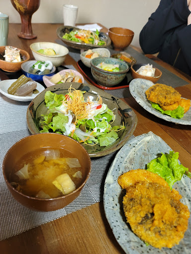 Read more普通の民家で家庭料理を提供されています。メニューはなく日替わりランチのみ、デザートコーヒー付きで1000円とは、主婦には、嬉しいですよね🤗そして肝心の味ですが直ぐに真似したくなるような食事ばかりでした。オシャレな小鉢に何種類ものおかずそして今回のメインは、しいたけと、タケノコのフライでした。とっても美味しかったです。季節によってメイン料理は、変わるそうですよ。また、伺いますね🥰目でみて美味しい食べて美味しい‼️是非とも...
