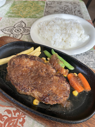 ランチメニューは5種類で『和風ハンバーグ1150円』サラダ、スープ、ドリンク付きです。 スープはあっさりしたポタージュで、飲み進めていくと底に人参、玉ねぎ、椎茸、ウインナーを細かく切って具材がありました。 ハンバーグはジューシーというより肉々しい感じですが硬くはないです。お肉自体にも味付けしてありますが、ソースをかけると更に美味しさが増します。 リーズナブルで美味しいので大満足です。他のメニューも是非食べてみたくなりました。ライスが少なめなので、男性は物足りないかもしれません。サラダのドレッシングはオリジナルで、500円で販売もされています。 ...