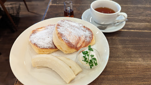 この日はパンケーキ1210円とアッサムティー600円を頂きました。セットは無く、単品注文となります。 お会計は1810円。(写真参考:紅茶は口をつけてしまって少なくなってます) 紅茶はポットサービスではないものの、厚く大き目カップにたっぷりで冷めにくいです。 ミルクに合うアッサムもパンケーキと相性が良く、どちらもたいへん美味でした。 コスパはちょっと高めに感じましたが、今、卵も小麦粉も値上がり中なので…高いか安いかはあなた次第ということで…。 客層は、皆さん静かに時間を過ごされているので騒がしいのが嫌いなかた向きかも。 パンケーキはふわっふわなのが2枚で来るのですが、けっこうお腹いっぱいになるので、お友達やご家族と来て、各自飲み物を頼んで、パンケーキをシェアするのも良いかも。
