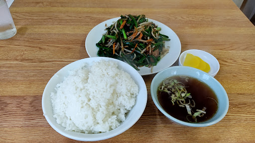 平日ランチにて。当日は大変な大雨。 見るからに町中華の佇まい。 御主人のみのワンオペ。 注文は厨房にいる御主人に直接伝えます。 ニラレバ定食(¥750+¥250)を注文 単品+¥250(白飯、スープ、漬物)で定食に。