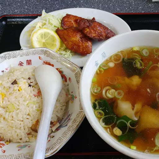 Read more以前から気になっていた、中華料理金蘭さんへ。 14時までやっているランチセット注文。 900円でラーメン+炒飯+唐揚げにしました。 具無しなどの口コミも見受けられますが、個人的には900円払って三品セットのコスパはかなり大きいと思います。ラーメンも炒飯もそれなりに具材は入ってました。 まず、ラーメンは醤油味でしたが、味が濃くなくあっさりとしていて良きです。素朴な感じが逆にスープも飲みやすく、個人的に好みです。 炒飯は、最初食べた時は薄いなーと感じてましたが、その薄味が逆に、食べ進めていくと、ちょうど良い塩梅だと思いました。 唐揚げは、少し濃いめですが、サイズも小さく、衣たっぷりの唐揚げみたいな感じでは無いので、重くはなく、軽く食べられると思います。 全体的に三品の味の濃さのバランスがいい感じで取れていたと思いました。 濃いめの味付けに慣れてしまっている方も、是非炒飯を食べて欲しいなという感想。 お店の雰囲気は、お客さんは地元の常連さん?がよく来ているイメージで、お店の方の対応も特に気になる点はなかっです。 ひとつあるとすれば、カウンターには足を入れるスペースが確保されていないため、かなり食べづらいことです笑 また食べたくなった時...