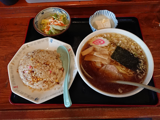 訪問3回目で駐車場が空いていて11:30に初入店。先客1名。チャーハンラーメンセット900円を注文。6分で着丼。醤油スープ、鶏油多目の生姜が香る熱々スープ。ストレート細麺、具材はチャーシュー・メンマ・ナルト・海苔・葱。少し油が強いチャーハン。ラーメン・チャーハン味は標準的な味ですがサラダ・冷奴がついて900円はCP良いですね。後からガテン系の方6名入店してきて各種大盛注文してました。どんな...