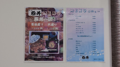 豚丼大盛りを注文。1400円とまあまあな金額です。厚めに切られた豚肉6枚が乗ったご飯と味噌汁、沢庵2枚。出てくる迄に結構、待ちました。店員さんから『ドリンクバー、ご自由に』と言われました。ほうじ茶、緑茶、コーヒーのおかわりがセルフで出来る様です。しかし、隣に座った方には、ドリンクバーの案内は無く、『味噌汁はおかわり出来ます』との案内がありました。私には、味噌汁の案内無し。食べる物で、サービス内容が違うのかも知れません。もし、店員さんによって、案内する、しないが違うなら、店員レベルが低く、改善点です。