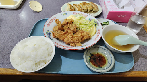 Read moreランチに何度も訪問してきたんですが、準備中の札がさがってる事が続き、もしかして閉店したのか?って思ってたんですが、昨日その謎が解けました。 昨日は、お店の前に数人の待ち客と思われる人がいるのに?入口にはいつものように準備中の札が下がってました。 待ってる方に聞いてみたら、店内が満席だと準備中の札が出て、店主の方が案内してくれるまで外で待つ事になってるみたいw なんだ、そうだったのか! コインパークにクルマを入れ お店に戻ると待ち客は居ないけど準備中、すぐに店主さんが顔を出し、人数を告げるとしばらく待つようにとのこと。 5人でしたが、 意外にすぐ入れました! から揚げ定食¥600-と、焼き餃子¥250-を注文。 店内は思いの外広くて、店主の男性のワンオペ?で廻しているようです。 それでも?そんなに長くは待たされず、から揚げ定食ともつ煮定食に各自焼き餃子を付けてのオーダーでしたが、ほぼ大差無く食べ始められました。 から揚げはカリッとモチッと、うすしお味、大きさは小ぶりですが、コレは美味い!なんたって税込み¥600-ですからね?野菜とお新香、スープも付いてます。 餃子もどちらかと言えば小ぶりですが、皮がしっかりしていて、満足感のある餃子でした。 念願叶って初訪問、リーズナブルな上に味も良し、満足しました~! ただ、準備中の札は考えものですよ~~┐( ̄ヘ ̄)┌ 休みだと思って、何...