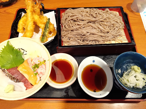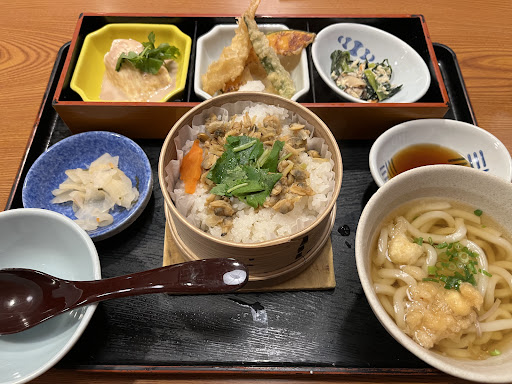 Read more午前10時30分からの営業開始は有り難く、早めのランチを必要とする方にとっては有難いところ。メニューは和食全般に及び和食に関してはほぼ望むものを求めることができそうだ。今回は蕎麦うどんから"二色合盛り天せいろ"とデザートに"あわゆきかき氷"宇治金時ミニサイズを頂くことにした。二色合盛り天せいろはうどんと蕎麦が半々に天ぷら5点盛として提供された。汁が3種でそれぞれ味変まで楽しむことができる。蕎麦うどん共に喉越しがとても良く、特にうどん麺がコシがあって絶品である。天ぷら5点盛には海老、キス、野菜天で内容がとても良い。ただ麺量が少ないので男性の方は麺増しを注文した方が良さそうだ。〆のデザート"あわゆきかき氷宇治金時"は蜜が別皿で提供されてきた。氷中央部にソフトクリームが入っていてなかなか凝ったかき氷である。総じて内容&味わいは満足度高い商品であった。サービス面においてもシニア割があったり、各種ポイント等が利用できて想定外の割引が適用された。和食で何にするか迷った時等迷わ...