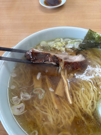 あっさり系のラーメンで、チャーシュー、メンマ、ネギ、海苔のトッピング。昔ながらの中華そば。昭和世代には懐かしいスープで、可もなく不可もない感じ。 やはり、チャーシューがメインなのは間違いなく、分厚く、香ばしく、美味い。他店の厚切りチャーシューなんか比べ物にならないクオリティです。ラーメンよりチャーシューでリピートする気がする。 あのチャーシューだからあのラーメンなのかな?食べ終えてみると丁度良いバランスの様に感じます。