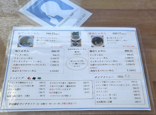 Read more2023.09.08 汁9 塩らぁめん 麺8 880円 具9 総合9/10点 ・高レベルなあっさり系ラーメン 【スープ】 かなり高レベルなあっさり系スープ。まずカツオ節っぽいスモーキーな香りがガツンと来て良い。そのあと動物系の丸みのあるコクが感じられうまい。いくらでも飲める系。 【麺】 かん水と麦の香りがふわっと香る、やや細ストレート。軽く低加水寄り。わりと量もある感じで満足感がある。バキバキの低加水でもないので途中から少しスープを吸ってかちょっと飽きてくる。ともあれあっさり系スープに良く合っている麺。 【具】 まずチャーシューが激旨。やや厚切りのチャーシューはトロントロンで、どうやって崩れないでラーメンに乗せたのか不思議なぐらい。味も抜群で豚の旨味がK点超えして脳汁が出る。味も程よくつけられている。 面白いのがネギ。大変珍しい超みじん切りで、香りがたっていてうまい。あっさり系だと単調になりがちな味わいをキリッと締めてくれる。 ここで難しいのが揚げネギ。こんなジャジャ馬入れて大丈夫かと思ったが、最初はアクセントになっていていい感じではあった。が、だんだんとスープにしみてくるとネギの香ばしさでカツオのスモーキーさを殺してしまいスープの方が単調な味わいになってしまった。個人的には次回は揚げネギは抜いたほうが良いような気がする。 小松菜っぽいやつは良い火の通し具合でうまい。デザイン的にもおしゃれでここのラーメンを際立たせてくれる。 メンマは特に印象に残らなかった。 【Aセット】320円 平日のランチ限定のセット。小ライスとお大きな餃子2個のセット。あとから見るとBセットはこのセットのご飯がチャーシュー丼に変わるだけみたいだったのでBセットにしておけばよかったと悔やむ。 餃子の方はそれなりにデカくてコスパ良い印象。餃子自体は王道のニンニク生姜のきいた宇都宮餃子のいいヤツぐらいかなぁ。大きな特徴性は感じない。まさしよりちょっと旨いぐらいだとは思うけど宇都宮餃子の枠は超えない感じ。良かったのはラー油で、中華風味の強いラー油をつけて少し抜きん出る感じ。隠し味程度に八角がきかせてあるかな?いい具合。 【総評】 いい感じの高レベルなラーメンだった。場所も決していいわけではないのにしっかり人気店になっているのはすごい。どうでもいいけどここは券売機式ではなく最後会計式。たぶん現金のみ。次回はチャー...