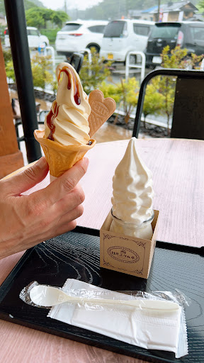 Read moreゴルフの帰りに疲れたせいか甘いものが食べたくなりちょっと寄り道を😊 ソフトクリームが食べたかったので普通にバニラソフトを頼むつもりが、期間限定で杏仁プリンがあったのでそちらも食べてみる事に。ここのプリンは不味いとかではないが、私はとろとろ派ではなく硬め派なので普段食べる事はほぼ無いのですが杏仁プリンはプリンとゆーよりは杏仁豆腐を食べてる感じだったのでまぁ悪くはなかったです。しかし杏仁が少々強めな感じなので人によっては薬っぽく感じてしまうかもしれません💦 ソフトクリームは普段食べている某店よりは甘さ控えめでコクはあるものの後味がサッパリなので、これはこれで美味しい...