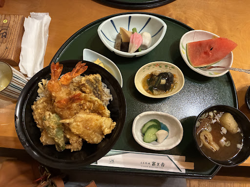 Read moreお店の雰囲気はとても良いです。 私は接客によって店の印象は大きく変わると思っているので、それによって料理がより美味しく感じられたり、綺麗に盛り付けてあるのにあまり感動しなかったりします。 夜、8:30に女性2人で入店したのですが、開口一番「9:15には締めますけどよろしいですか」でした。 アラ還女性2人がそんなに長居すると思ったのでしょうか… せめて「ラストオーダーは〇〇時ですが宜しいでしょうか」と言って欲しかったです。 なので食事はまぁまぁ…という印象になります。写真は天丼のセットです。 大きめの海老が3尾乗っていましたが2尾で良いかな…と。 食事の後、お茶を足して頂きたくてお願いしたらとても不機嫌そうな顔をされました。 丁寧な接客のお店は「気がつかなくてすみませんでした」と言ってくださいます。 私達より年配のスタッフさんだったので、教育のしようが無いのかなと思い、期待せずもう行かないという選択になります。 そして、ランチのカード決済は不可との張り紙がしてありました。 ランチの際は...
