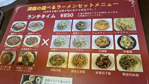 Read more中華料理の中でも台湾の方が営む台湾料理を中心としているよう。ランチは定食類とラーメンセットがあり今回はラーメンセットを注文することにした。ラーメンセットはラーメン6品と飯類12品から其れ1品をチョイスし組み合わせるもの。そこでラーメンは"台湾ラーメン"を、飯類は"麻婆茄子飯"をチョイスすることにした。10分程で着膳し先ず驚かされたのは量の多さ!其れ1人分はある量である。このセットが850円とはコスパ最強で、この料金で2食分を食する気分である。味わいに関しては、台湾ラーメンはあっさりながらもチョイピリ辛、麺は市販のインスタント麺のようであった。一方麻婆茄子飯はやや濃い目の味付けで茄子が沢山入った丼で、双方味わいに関してはそこそこといったところか!ただこのセットをこのコスパで頂けるのは感無量!次回は他のメ...