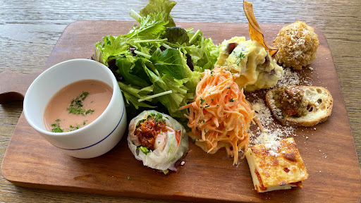 『ストゥブ野菜ランチ』でメインは『カンパチとあさり』を注文。 最初に提供されたのは〝前菜プレート〟。 一品一品丁寧に作られている印象です。特に人参のラペが好みで、甘酸っぱい味ではなくクリーミーでまろやかだったのが印象的でした。