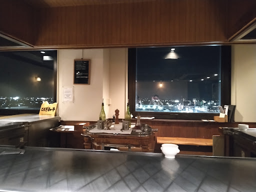 雰囲気、景色のよい静かなお店です。ゆっくりと食事を楽しむことができます。夫婦で訪問し、アワビと伊勢エビのついたコースを注文。以前は女性のシェフでしたが、今回はベテラン風の男性でした。口数少なく、淡々と料理をしていただく感じで、我々夫婦はこちらの会話を楽しむといったスタイル。食事のスピードはこちらの食べる速度や、飲み物の塩梅を見ながらといった様子で、遅すぎもせず早すぎもせず程よいペースでした。残念だったのは、味付け。濃い味が好みな私ですらしょっぱいと思うほどの塩加減でした。好みが分かれるところとしては、調理の仕方だと思います。鮑や伊勢エビは、バター焼きなどではなく本当に素材をそのまま焼くといったスタイルでした。(以前の女性のシェフの時にもそうだったかどうかは記憶が確かではありませんが、以前は素材の味だけではなく+調理をしてあったように記憶しています。)私自身は調味料などは付けずに食べたい派なので、このスタイルは全く問題ないのですが、もう少しシェフの技術や味付けの個性があってもよいのかもしれません。また、伊勢海老については二人で一匹でした…。一人一匹かなぁと思っていたら、半身で出てきたので、妻と顔を見合わせて笑ってしまいました…。そして、楽しみなガーリックライスですが、残念なことに、バター醤油ライス+パリパリガーリック(あらかじめ作ってあるもの)和えといった感じで、直前に食べた肉の脂を使っての調理…というわけではありませんでした^^: 正直、肉があまり好きではない夫婦にとって、せっかく頑張って肉を食べたのに、結局その脂を使わずにガーリックライスを作るのであれば、肉は食べなくてもよかったのに…という思いでいっぱいになりました。お味は…はい、普通のバター醤油味のガーリック風味チャーハンです。 最後に接客面ですが、さすがはホテルのレストランとあって、しっかり丁寧にされています。特にソムリエの方は抜群ですね。隣のフレンチでもお見かけしたことがあるように思っているのですが、その時も丁寧な言葉遣い、立ち居振る舞い、そして、適切なお酒の提供に感激しました。日本酒がメインなのでワインは初心者かつあまり飲まないのですが、料理に合わせてワインをチョイスしていただけたりもしますし、初心者ながら料理とのマッチングは素晴らしいと思いました。あのようなウェイターさんがいらっしゃるお店にはお値段以上の価値があるなぁと思います。料理面とお値段を考慮して、辛口評価としましたが、サービスは...