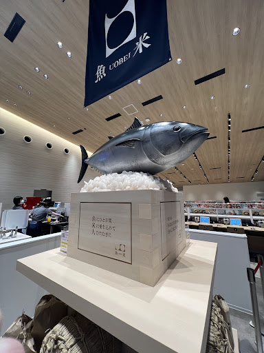 2025年3月にオープンした、名前を「魚べい」から「魚米」に変えて初めての店舗です。HPいわく『近年のすし業界の競争激化を受け、「魚べい」の魅力を見つめなおし、更なる付加価値を提供できるようリブランディングを実施しました』とのこと。 最初の印象は、うわ〜おしゃれ〜といった感じ。 中に入ると大きなマグロのオブジェが出迎えてくれます。天井が高く、ほぼガラス張りのスタイリッシュな空間で、開放感いっぱいです。 建物がきれいでテーブルも椅子も清潔感たっぷり、気持ちよく食事ができます。魚米では、テーブルに設置されていたお湯の蛇口がなくなっていて、お茶も水も近くの自動給茶機で入れてくるスタイルでした。 相変わらずの美味しさは魚米でも健在で大満足なのですが、メニューは従来の魚べいとほとんど同じ。鶴田店限定メニューが数点あるものの、特に真新しさは感じませんでした。鶴田店少し遠いので一度行けばあとは近くの魚べいでもいいかな、というのが私の本音です(魚米の方ごめんなさい)。 でも、でもですよ、出来たてほやほや、しかも従来の魚べいとは一線を画した高級店のような佇まいはこれからの魚米に期待しかありません。 美味しい寿司を腹いっぱい、大事な人と素敵な空間で食べたいのなら、まずは...