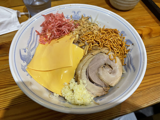 Read more以前味噌ラーメンを食べた時にすごく美味しくて、まぜそばをまだ食べたことがなかったので行ってきました。一般的にまぜそばに入っている具材に、乾燥エビと券売機の表示にはエビマヨと書いてあり、新しいなと感じ食べてみました。正直エビはそんなに感じられませんでしたが、全体の印象としては美味しかったです。ほんの少し塩気が強い気はしましたが、嫌な感じやしつこさを感じることはありませんでした。乗っている具材やスープの味のバランスが良く、食べやすいまぜそばだと感じました。私はそこまで大食いではないので、麺少なめでお願いしましたが、それでもボリューミーで食べごたえはものすごくあります。豚も柔らかくて美味しいので、トータルバランスがよく取れていてまた食べたくなるまぜそばです。麺は平たい麺ですが、茹で加減が絶妙で食べごたえ抜群。まぜそばがお好きな方は、一度食べてみてください。ちなみにラーメンも...