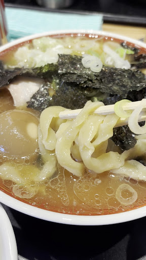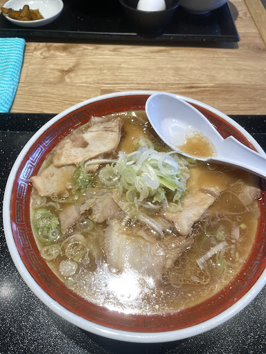 Read moreオープンして間もないキレイなお店。山岡家と同じ食券機で食べたい麺の食券を購入して、店員さんに券を渡すとラーメンを準備をしてくれカウンター越しに提供してくれる。ライスを頼めばおかわり自由のサービスが嬉しいところ、辛ニラと生卵一つは現時点でサービス中のようです。提供を受けるカウンターの端には自由に盛れるネギが大きなボールに盛り沢山ネギ好きには嬉しいサービス。乾燥防止の為か下の方には水が入ってます。したがって下の方から取ると水に浸かったビチャビチャのネギを取る事になりますので、ここは若干のマイナス点。今回私はベーシックな太旨ラーメン880円とライス150円をチョイス。卵は卵かけご飯にすべくライスにかけテーブルに備えつけのラーメンのかえしをかけてみたところラーメンのかえしの塩味が普通の醤油には比べても強い。皆さんも言われているラーメンの塩辛さはこれなんだなと分かりました。もう少し"かえし"の量を減らすかスープ自体を増やして割合を減らせばバランスがよくなりスープの旨みを感じられると思います。麺は佐野ラーメンに近い感じの手もみ太麺といった感じの食べ応えのある麺なのて物足りなさはあまり感じない。基本的にはさっぱり系のラーメンだがテーブル備え付けの調味料のバリエーションが豊富でおろしニンニク、辛味噌、カレーパウダー、魚粉、青海苔、ブラックペッパーを駆使して好みの味にカスタマイズ出来ます。一旦デフォルトのスープの味を確認してから、私はおろしニンニクとブラックペッパー、サービスの辛ニラをのせてみました。おろしニンニクを入れて気付いたのですがニンニクを入れると元々しょっぱさを感じるスープの塩味が際立つ感じになるので少し注意が必要です。"かえし"の濃さは変えてもらう事が出来るかは聞くのを忘れましたが、しょっばいのが苦手な方は聞いてみ...