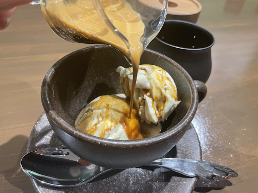 今回はシフォンケーキとエチオピアを注文。 相方はアフォガードとマンデリンを注文していました。 特にこのアフォガードと言うのは、エスプレッソの質で全てが決まると言っても過言ではなく、脂質の層であるクレマが分厚く、しっかりとしたコクのあるエスプレッソでアフォガードを食べるとこんなにもおいしいものなのかと驚きました。