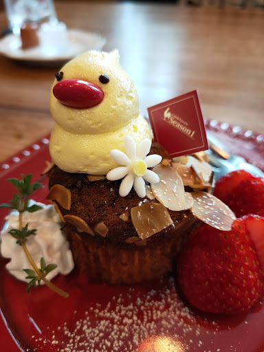 ・バースデーのデザートプレート モンブランケーキ、チーズケーキ、可愛いメレンゲクッキーのプレート内容です。 メレンゲクッキーはサクサクとした口当たりでシュワーっと溶けて無くなります。 モンブランは優しい栗の甘味が調度良くチーズケーキは滑らかな舌触りで旨いね!