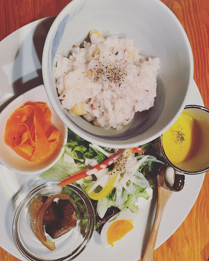 しかも個別に作るのがめんどくさかったのか一つを嫁の皿とで半分こされてました。 カフェめしはビジュアルも大事なのにね。 雑穀米もレンチンなのか、所々塊があり、固かった。ハヤシライスがレンチンあたためなのかは不明。 味は好みが出るが、酸味が少し強く私は好みではなかった。 ハッキリ言って私はもう二度と行かない。 コーヒーだ...
