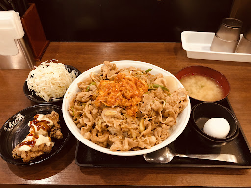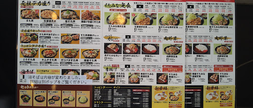 Read moreボリューミーで塩っぱい印象が強く暫くご無沙汰となっていた。最近ではメニューがかなり様変わりしたとの情報を得て久々に訪れてみることにした。約3年振りとなる。メニューはすた丼のバリエーションが増えたこと、カレーや肉そばのメニューが増えたこと、生姜焼き等の定食類が追加されているのが目に留まる。単品メニューやセットメニュー、トッピング類は豊富なこと以外に、好みのボリュームで注文できるのは相変わらず当店の付加価値のようである。今回注文したのは"すたみな唐揚げカレー並盛"と"豚汁サラダセット"。追加されたメニューのカレーと肉そばのどちらにしようか迷った挙句、今回はカレーで攻めてみることにした。量は並盛で具材には唐揚げを選択。並盛と言えど290gはかなりのボリュームである。10分程で着膳したカレーセットは唐揚げが5個も入った想像通りボリューミーなもの。辛さは中辛程度だが濃厚で旨味たっぷり。唐揚げは相変わらずとても美味い。一方豚汁は優しい美味しさで、濃厚なカレーには丁度よく感じられた。今回の来訪を通してまた異なる印象が植え付けられたよう。次回は肉そばも是非食...
