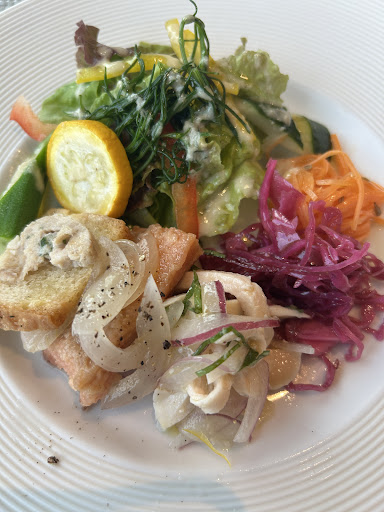 店内は明るくて整然としている。カウンター席も多く1人利用もし易そう。平日の営業開始早々に2組目として来訪。ランチメニューはパスタ3種類とハンバーグの計4品から"アサリと緑野菜のペペロンチーノ大盛"と"鮭とほうれん草のクリームソース"を注文した。セットとして前菜、ドリンク、デザートのティラミスが付いてくることになっていた。注文後15分程で前菜が、20分程でクリームソースのパスタが着膳した。しかしペペロンチーノが待っても待っても出てこない。結局、注文後40分程でペペロンチーノが着膳することとなった。ただ麺がかなり柔柔でふやけていて、先に着膳したクリームソースのパスタの様な食感が全くない。味付けも極々普通で特段印象に残る味わいではない。周りの来客者もかなり待たされているようでもどかしさを感じる程。極みはデザートのティラミスで、これまた待っても待っても出てこない。仕方ないので諦めてお会計を済ませて店を後にした。当店はオペレーションの問題がかなり深刻であると共に、経営者の姿勢が問われ...