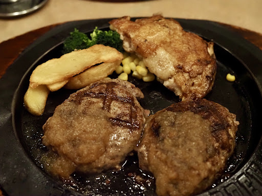 I got the hamburg steaks with chicken, as well as the garlic rice.