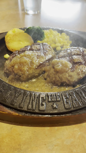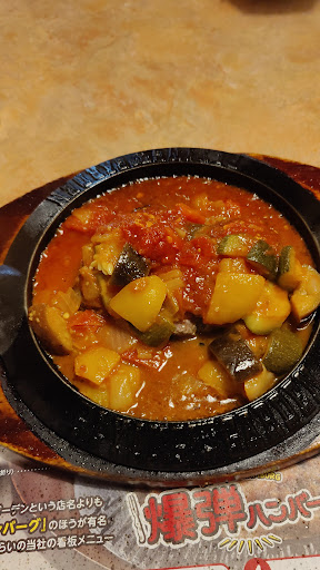 Read more平日ランチでの訪問となります。 宇都宮に立ち寄った際にはよく利用させていただいています。 都内では見かけませんが、いわゆる北関東育ちの私にとっては慣れ親しんだお店です。 当時こちらの屋号をフラガと省略する人とFGと呼ぶ人がいましたが私は後者に属します。 店内ではフライングガーデンよりも爆弾ハンバーグと呼ばれているとの記載がありましたので時代の変化も感じると共に当時爆ハンと呼称していたこともついでに思い出します。 今回オーダーしたのは爆弾キングランチとシーザーサラダとなります。 若かりし頃はダブル爆弾を注文することもありましたが、加齢からくる食欲の減退を実感し悲しみを噛み締めます。 こちらのお店の特徴はなんと言っても目前に置かれた爆弾ハンバーグをその場で解体し、ソースをかけてくれるというアトラクションになります。 鉄板から奏でられるジュウジュウという音が唾液を誘発します。 粗く挽かれたのお肉はとても肉肉しくあり、ジューシーで肉汁(ニクジュウ)が溢れてくる感覚です。 どうした?この町も変わらねぇなぁ。 付け合わせのミックスベジタブルを見るような目で俺を見やがって。 忘れちまったか? オレだよオレ!ハンバーグだよ!! ということで今回はキングサイズのシングルボムでしたが、次回はツインボムへのリベンジです。 では腹ペコの皆さんに熱々の鉄板ジョークまずは250gのキングサイズから! ハンバァ〜〜〜〜〜〜〜〜〜〜〜〜...