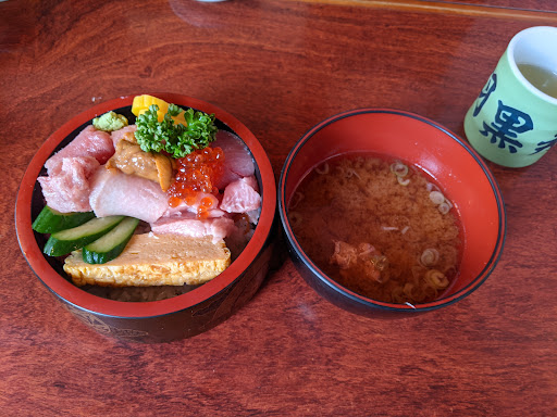 Read more当地域で唯一の寿司店。路地裏に佇む昔ながらの素朴な店である。ランチセットまで含め、寿司セットと海鮮丼のメニューが意外に多く、この中から"ウニまぐろ丼"3500円を注文することにした。前菜としてキャベツのサラダと枝豆が出され、ビジュアル的にはただ懐かしい田舎の食堂に来た感じである。約5分程で海鮮丼が着丼されたが、ウニと鮪がてんこ盛りの迫力ある海鮮丼にびっくり!ウニの量が多いのは勿論、鮪の分厚さには圧倒されてしまった。この鮪だけでも満腹度得るには十分であったが、中の酢飯がこれまたぎっしり盛られ、海鮮丼で久々に超満腹となってしまった。あら汁も美味しかったし、文句無しの海鮮丼といったところ。田園風景に囲まれた長閑な環境下で頂く海鮮丼はまた格別な美味さで大満足。気さくな店主との和やかな会話も楽しかった。また...