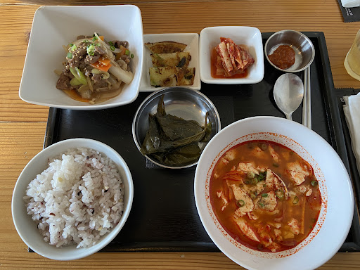 美味しい韓国料理があると友人に勧められて初訪問。店内は韓国ラジオが流れ異国情緒があります。カウンターとテーブル席があります。駐車場はお店横に4台のみです。お冷をお願いしたところ、ワンドリンクオーダー制と言われたのには驚きました。ドリンクを注文しないとお冷が貰えない飲食店は初めてでした。本場韓国はこのようなシステムなのでしょうか⁇