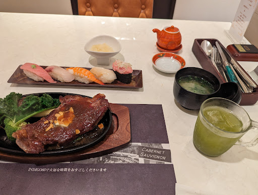 Contemporary grill with eclectic dishes from sushi rolls to T-bone steaks, plus international wines.