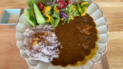 家具店内のカフェレストラン。木目基調の店内は静粛で落ち着いた雰囲気。家具類だけでなくワイン類の展示販売も行っていて、正に大人の空間を演出している。ランチメニューは計4種類。今回は"チキンカレー"と追加で"アイスコーヒー"を注文することにした。 着膳までは約15分程。サラダが盛られたカレーは酸味あるスパイシーカレー。ゴロンと入った肉も柔らかくて美味しい。五穀米で頂くカレーはまた格別な感じがする。アイスコーヒーもコク渋味ある美味しいコーヒーで氷まで拘りが感じられた。それにしてもチキンカレー900円、ランチドリンク100円は最強のコスパであり、洒落た雰囲気下でのランチとしては最高である。ランチで訪れるも良し、カフェタイムに訪れるも良しといったところで、頻繁に利...