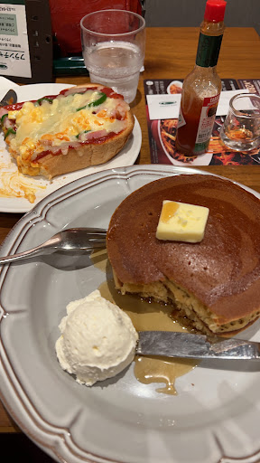 Read more料理については3点を付けます。キャラメルクリームのパンケーキはとても美味しかったですが、チョコレートのパンケーキは私の口には合いませんでしたし、ピザも期待外れでした。一番満足できたのはビーフパスタで、それはかなり美味しかったです。結局、私が気に入ったのはキャラメルのパンケーキとビーフパスタだけでした。 サービスは非常に良いです。スタッフはとても親切で、過度に干渉することもありません。ただ、店内が非常に狭いです。テーブルが近すぎて、隣のテーブルの人に会話を聞かれるように感じ、プライバシーがほとんどありません。リラックスして会話を楽しみたいのに、少し不快に感じました。テーブルをもっと広く配置することを検討すべきだと思います。 価格については、他のカフェと比較して高めです。パンケーキと食事を合わせると、一人で最低でも3000円はかかります。決して安い場所ではありませんが、キャラメルパンケー...