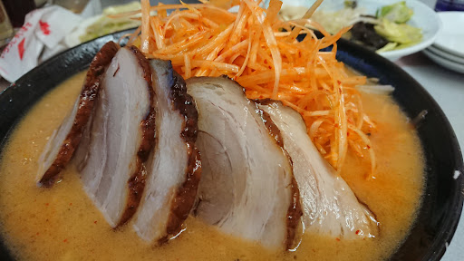 Read more通い始めて2年位かな?月に2~3回は行ってます。 お店の人に挨拶されてしまう位に常連になってしまいましたな。 今日は今年の食べ納めしてきました。 自分は基本、味噌チャーシュー麺です。 ニンニク効かせた味噌スープのコクと旨味、野菜系がモヤシオンリーな分、野菜の水分で薄まってる感も無い、そしてチャーシューの厚さに反して口の中でサラッとほぐれる食べ心地、初めて食べた時に自分の知ってる物とは違う衝撃にドはまりしました。 無料ライスも一緒に食べてたけど、健康診断で皮下脂肪警告受けてからは控えてます。此処のせいですw 帰りはチャーハンをテイクアウトがセット。翌日食べるつもりが我慢出来ずに夜食にしたり。 この店この味が近所に在ったのが幸か不幸か。 また来年...