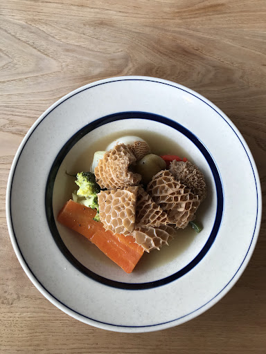 兎のマスタードソースは、甘い黒色のジャム?を兎肉で包み込んだものと、火の入った色とりどりの野菜がマスタードソースと絶妙にマッチしていて、目で見ても食べても最高の一品でした。